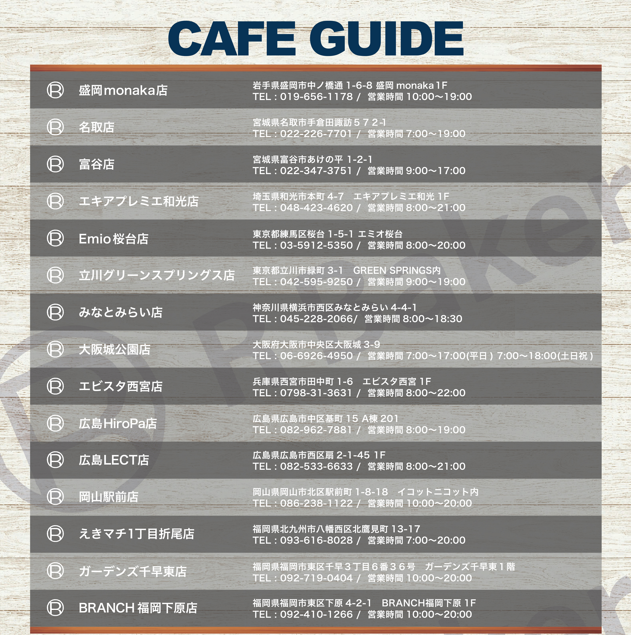 ・店舗によって写真展示内容や装飾の雰囲気が異なります。ご了承ください。